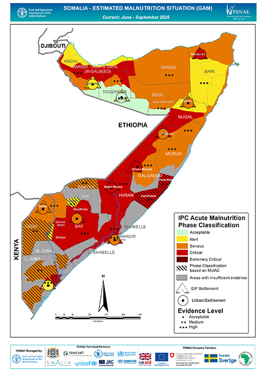 Somalia Estimated Malnutrition Situation - Current (June - September 2025) (Download PDF, 450 KB)